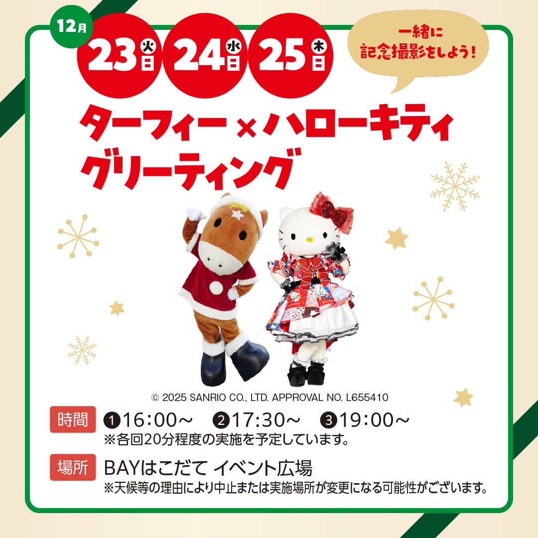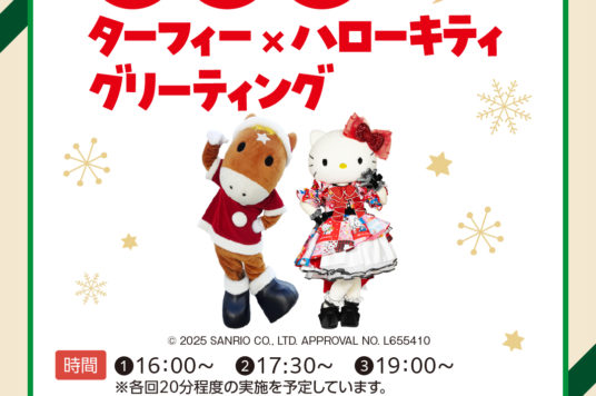 人気のJRAマスコットキャラクター「ターフィー」とハローキティが登場!