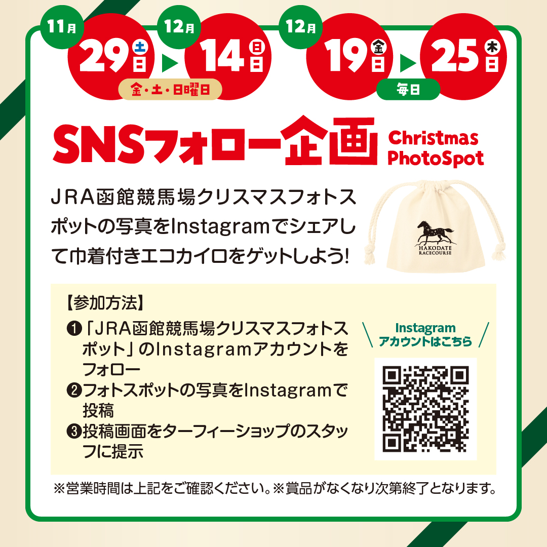 ❶「JRA函館競馬場クリスマスフォトスポット」のInstagramアカウントをフォロー