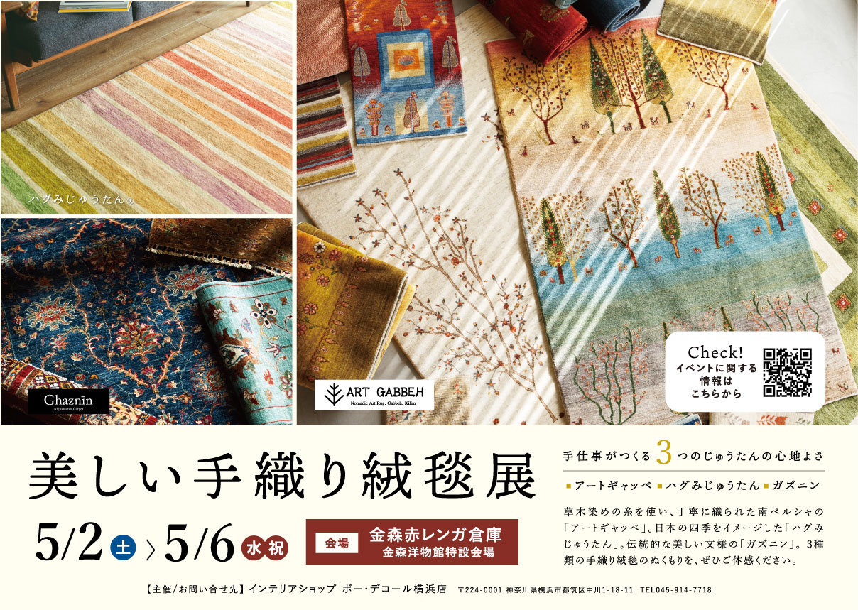 初開催!【金森赤レンガ倉庫】函館でアートギャッベ&ハグみじゅたん展 5/2(土)~5/6(水・祝)まで期間限定開催! | ギャッベ(ギャベ)&キリム専門 | アートギャッベ公式サイト