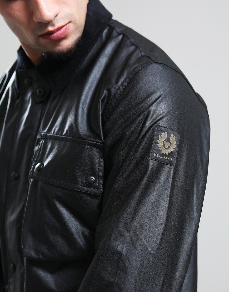 内側には、シグネチャーのベルスタッフチェック柄で織られたコットンツイルの裏地、袖に織られたフェニックスパッチ、アンティークブラスの金具が付いたスナップ調節可能な袖口が特徴です。