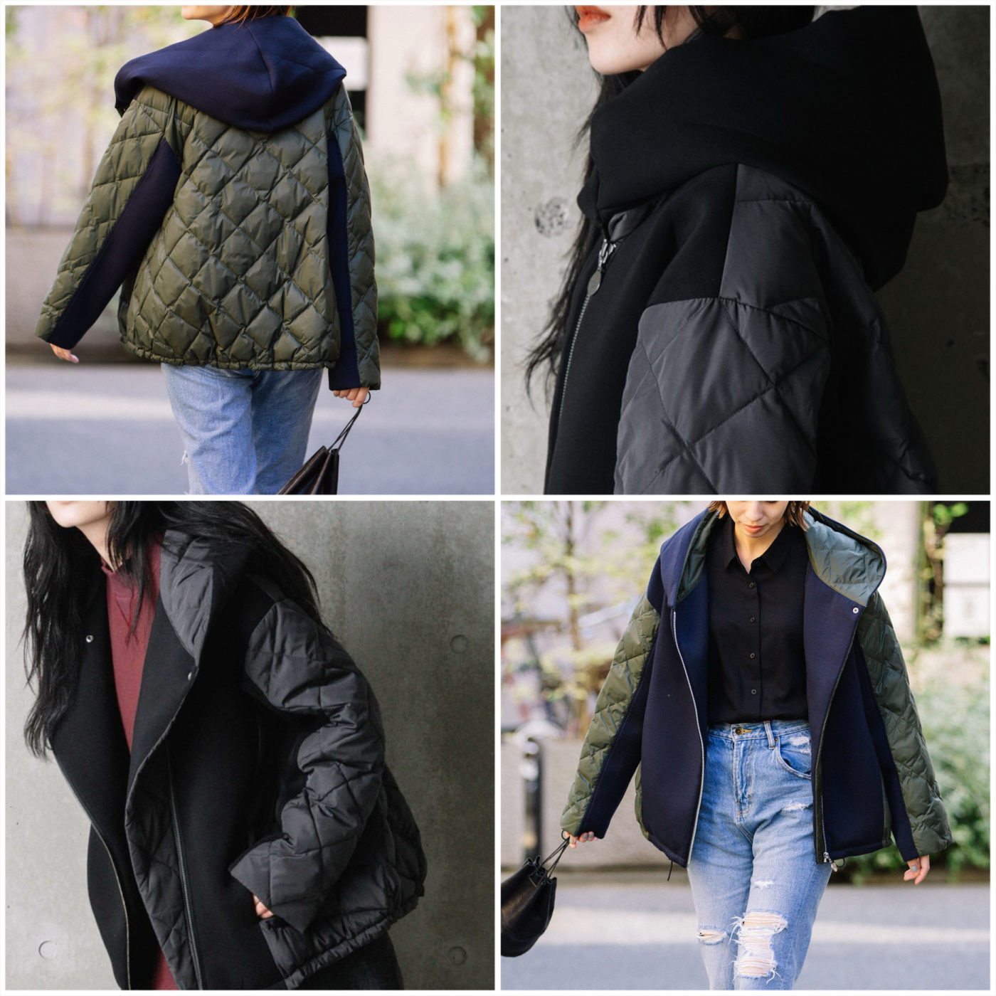 パーカーとダウンをドッキングさせた軽量な中間アウター。 機能的でありながらデザイン性の高いダウンブルゾンです。