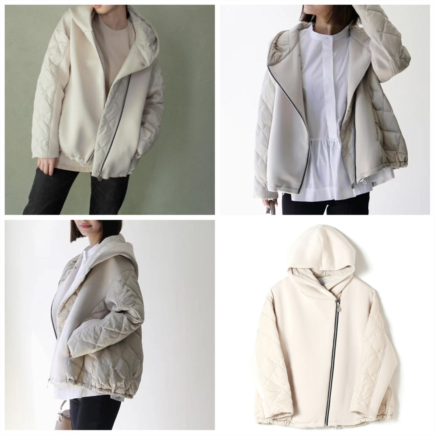 裾にコードが入っているので、スットパーで絞りを調節し、丸みのあるシルエットにアレンジすることも可能です。 カジュアル見えするブルゾンは、エレガントなスカートを合わせていただくとバランスがとりやすくおすすめ。