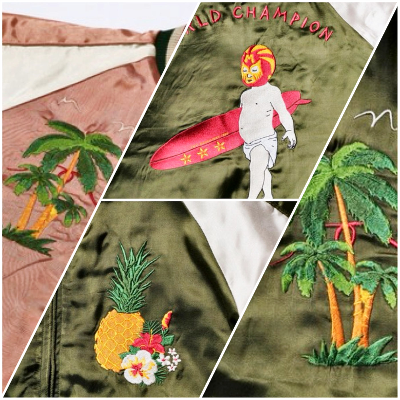 ヴィンテージ調でゴージャスな見た目のスーベニアジャケット。まるでシルクのような質感が特徴的なレーヨン素材は、柔らかく着心地抜群。