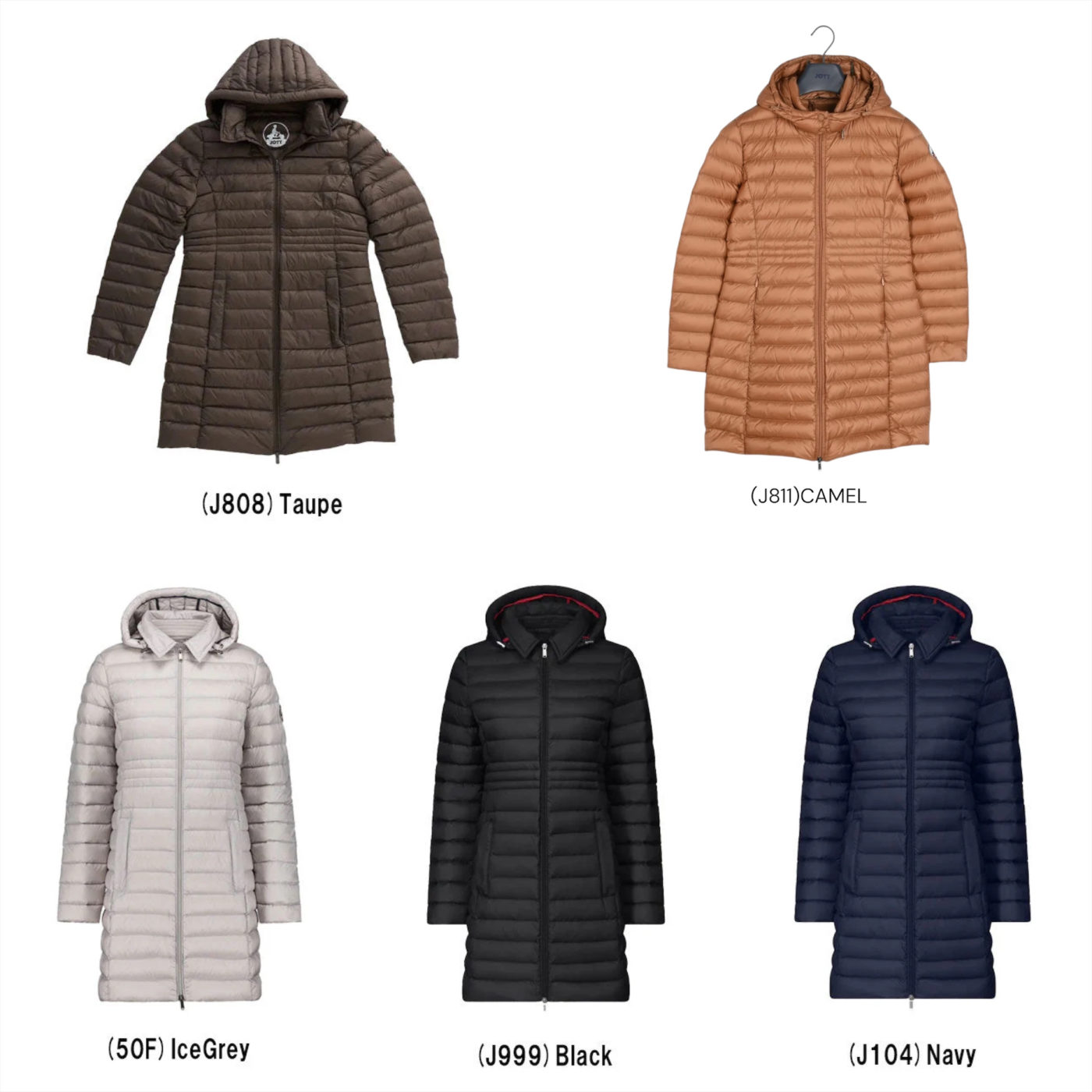 はエレガントで美しいフィットシルエットをもつアイコニックなフード付きのライトダウン。