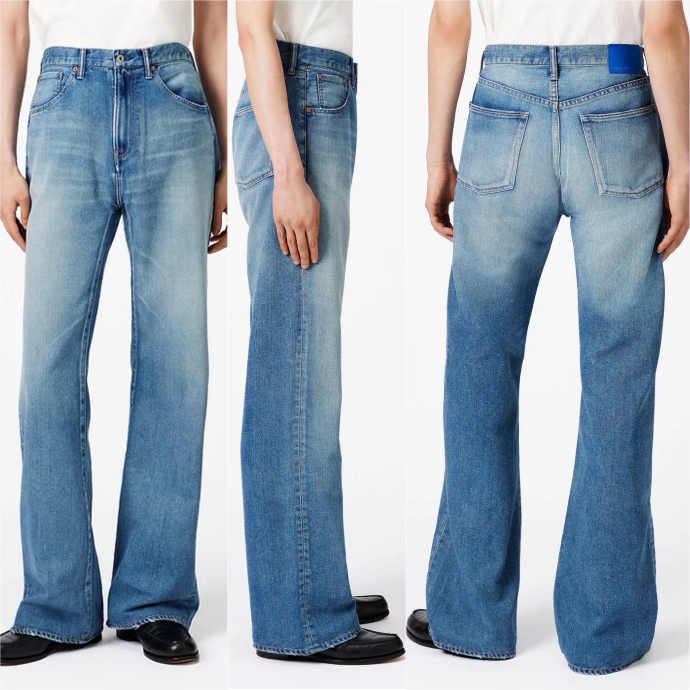エイジングによってたどり着ける色落ちで、最もベストな状態を再現したミディアムインディゴカラー。加工の内容を研究し、インディゴ染料の自然な褪色を忠実に表現をした鮮やかなブルーカラーが特徴です。