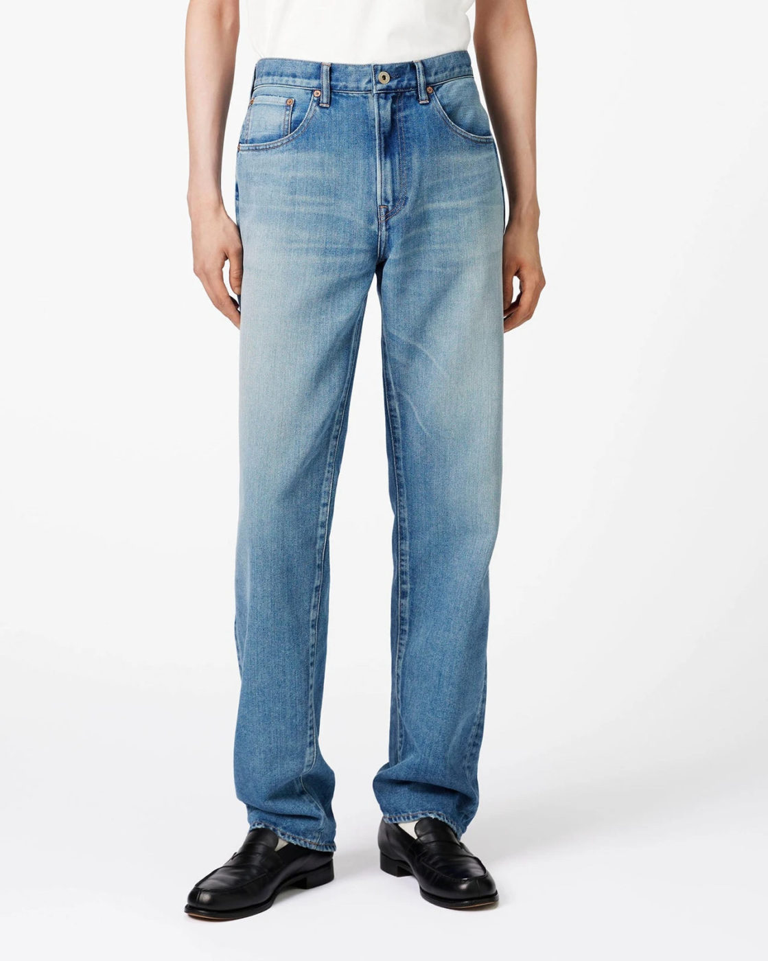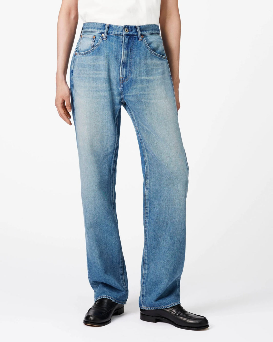 ゆとりのある腰回りから、ゆるやかにテーパードをかけた、すっきりとしたストレートレッグ。ジーンズらしい王道のシルエットです。