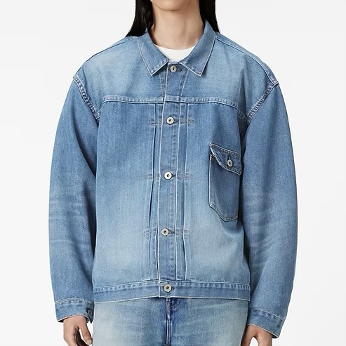 ゆったりとしたボックスシルエットのデニムジャケット。いわゆる1stタイプをモチーフに、ワイドな身幅とややドロップショルダーになるような肩周り、アームを設計しました。背面のプリーツはやや深めに設定し、立体感のあるシルエットに仕上げています。